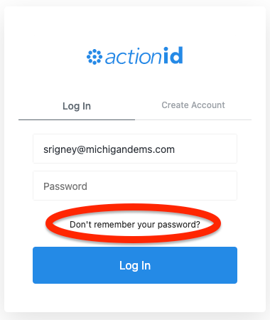 If you've verified that your email address is correct and your password still isn't working, you'll need to reset your password. Click “Don't remember your password?” on the Action ID login page after clicking “Log in with ActionID.”
